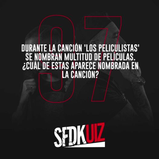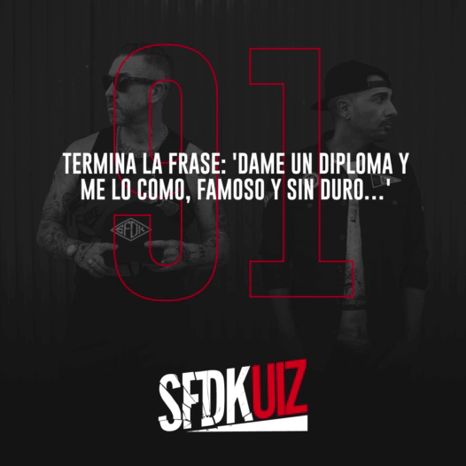 397 SFDKUIZ Antes de empezar, dinos quién eres: 1 / 20 A los 15 A los 13 A los 16 A los 14 2 / 20 Dúchate en mi suero" Vuelvo a mi agujero" Soy un bandolero" Soy un pendenciero" 3 / 20 Abbi Fernández Vicky Luna Juanito Makandé Beret 4 / 20 9 semanas y media Fuma verde 9 meses en el paraíso Volar en el paraíso 5 / 20 El chojin Chukky MC Mera Legendario 6 / 20 no le provocan daño alguno pierde un brazo se cae por unas escaleras es atacada por un perro 7 / 20 20 años haciendo el cafre y aún causo interés 30 años haciendo el bobo y aún causo interés 20 años haciendo el bobo y aún causo interés 30 años haciendo el cafre y aún causo interés 8 / 20 Rap y chimpancés Etapas Hoy no Sangre de Toro 9 / 20 Public Enemy EPMD Eric B & Rakim RUN DMC 10 / 20 Heat Toro salvaje Serpico Top Secret 11 / 20 9 8 10 7 12 / 20 5 3 2 4 13 / 20 1993 1994 1995 1996 14 / 20 y luego va y te cae de boca. convierte en oro todo lo que toca. me fumo uno madafacka. y humeante entre mis labios el primero de bellota. 15 / 20 Nigel Walker Jorge Gascón Jeff Dominguez Paco Rabán 16 / 20 Perritos calientes Pizza Empanadillas Hamburguesas 17 / 20 Querer es poder Ahora yo les traigo el sabor Seguimos en línea Rap romántico 18 / 20 Pacto entre castellanos Jauría de rimas La Trama Jauría 19 / 20 El aberroncho Hades La muerte Caronte 20 / 20 Más de 30 Más de 70 Más de 150 Más de 10 Your score is La puntuación media es 42% Facebook Twitter 0% Reinicia el cuestionario